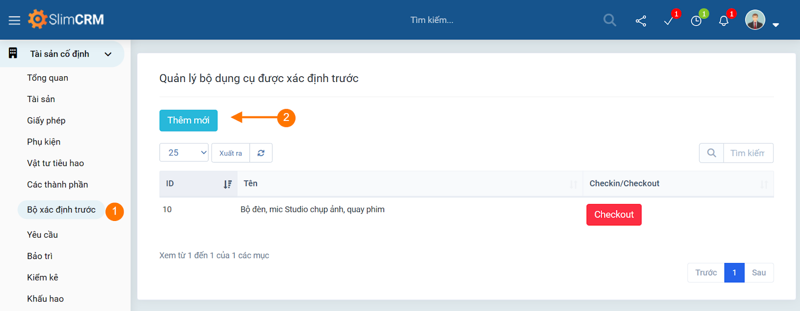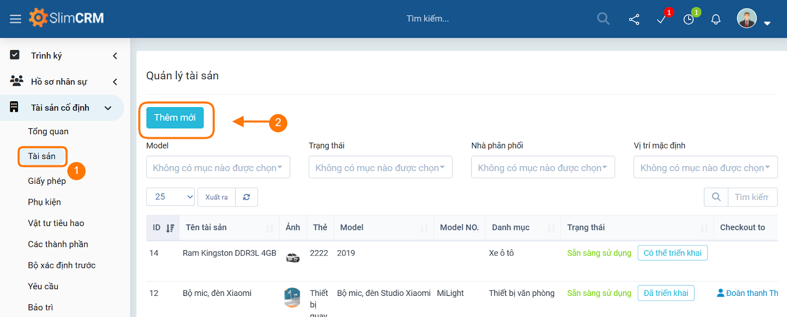 Trên các loại hình tài sản (1) , chọn **\[ Thêm mới ]** (2)