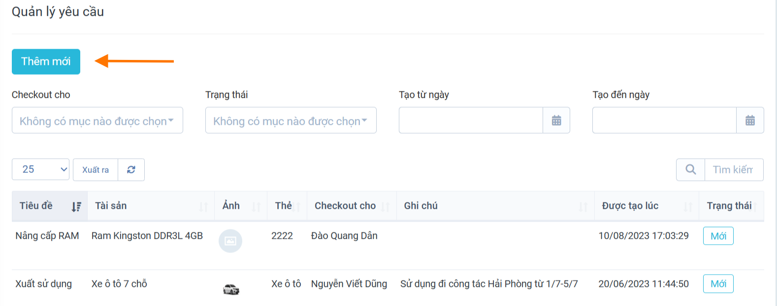 Trên menu \[ Yêu cầu ], chọn \[ Thêm mới ]&#x20;