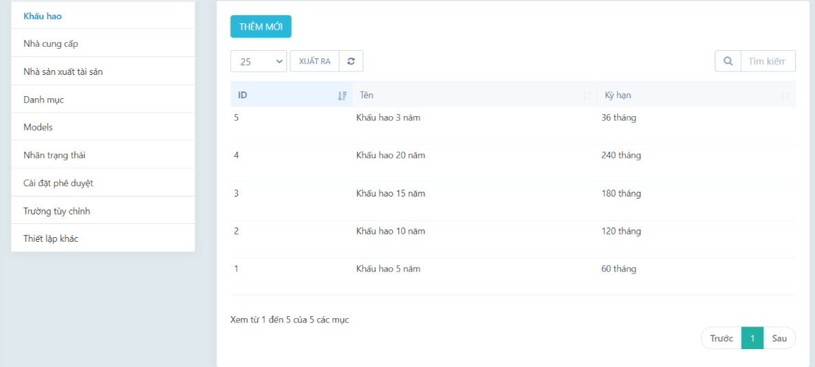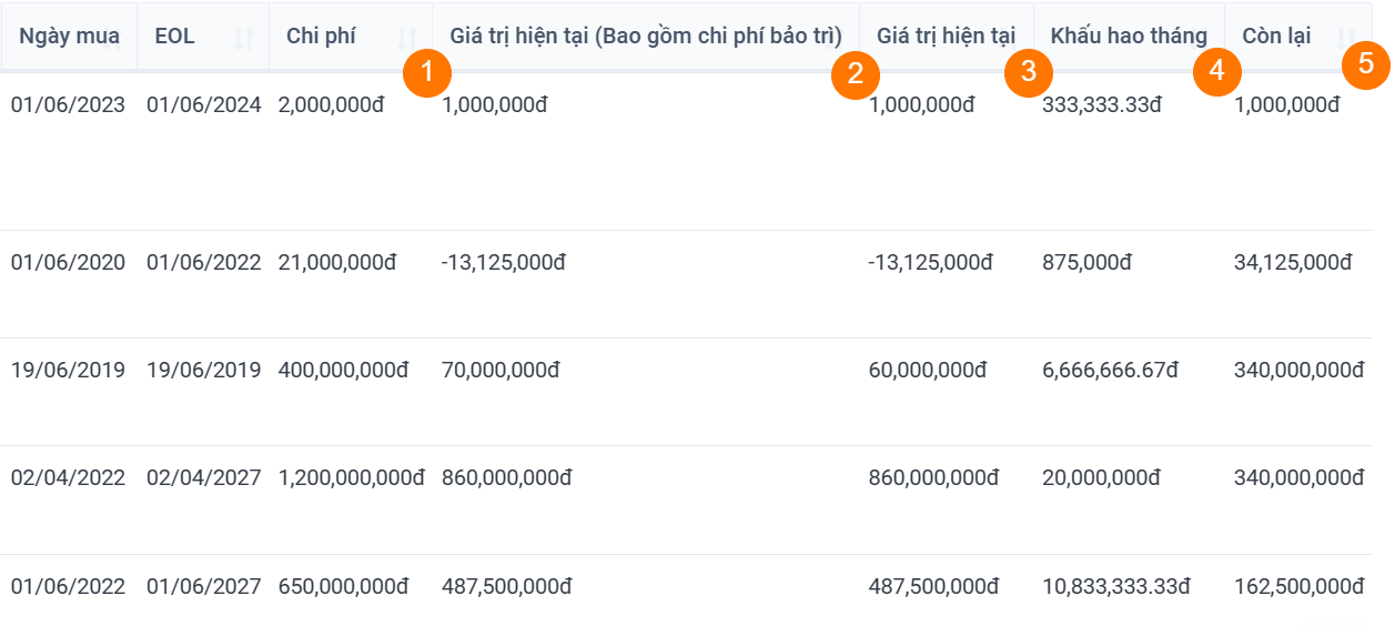 Theo dõi danh sách giá trị khấu hao của tài sản.