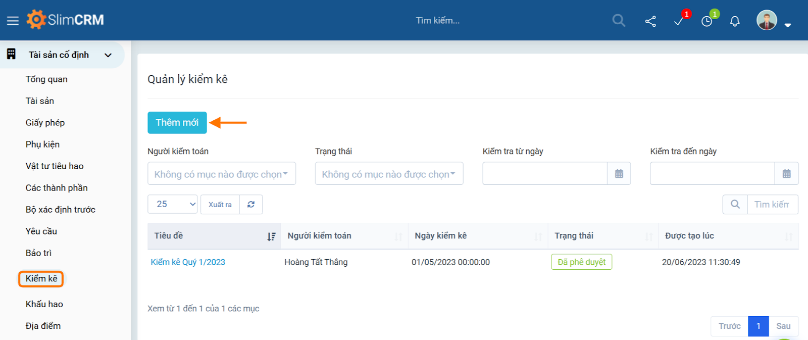 Trên menu, chọn **\[ Kiểm kê ] > \[ Thêm mới ]**